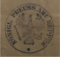 Stempel op een document uit het district Amt Meppen uit de jaren na 1866. Het Emsland is dan deel