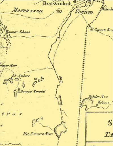 bij Nieuw Dordrecht naar de Runde twee meertjes zien met de naam ‘Boompjes Meerstal’. Anton Dijck vermoedt dat het meer net ten