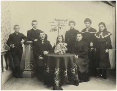 Bij de tafel zit vader Bernardus Hermannus dan jongste zusje Hermina